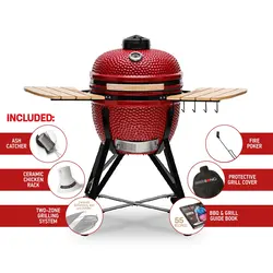 Lielisks modelis, kas pielāgots gatavošanai lielākām ģimenēm un draugu kompānijām (līdz 8 cilvēkiem) Lieliska izvēle privātmājas pagalmam, kotedžas terasei vai sētai. Bārbekjū pamataprīkojumā ietilpst: keramiskais bārbekjū ar statīvu, sānu paliktņi ar āķiem, inovatīvs stiklplasta starplikas, atjauninātas iekšējās uzlikas ar izplešanās savienojumu, divu zonu gatavošanas sistēma, divi pusdeflektori, katla/katla turētājs, keramikas vistas statīvs, pelnu tīrīšanas rīks, grilu vāks, pelnu savākšanas sistēma, BBQ recepšu grāmata (angļu valodā). Ar pamata grila komplektu, ko saņemsiet, varēsiet: gatavot tiešā karstumā (bārbekjū, steiki, burgeri, vistas spārniņi un citi ēdieni, gatavoti līdz 20 minūtēm). gatavošana netiešā siltumā (vistas gaļa, šķiņķis, izcirtņi utt. lielāki ēdieni, kas tiek gatavoti, izmantojot deflektoru) Kūpināšana (ribas, siers, plūkta cūkgaļa) Plova, zupu, sautējumu gatavošana.