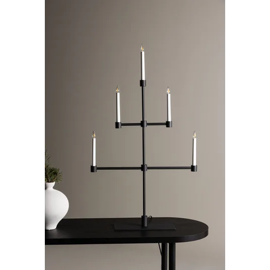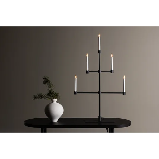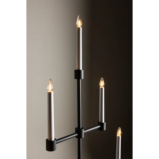 Piešķiriet savam mājoklim vienkāršu eleganci ar Avoriaz Adventes sveču turētāju. Šis adventes sveču turētājs ir izgatavots no matēta melna metāla un ir klasiskas tradīcijas mūsdienīga interpretācija. Tajā ir vieta piecām svecēm, un tas izstaro siltu un aicinošu gaismu, kas rada svētku gaidīšanas sajūtu. Matētais melnais metāls smalki kontrastē ar maigo gaismu, radot jūsu mājās miera un klusuma atmosfēru. Novietojiet to uz ēdamgalda, uz plaukta vai kā svētku dekora centrālo elementu, lai Ziemassvētku laikā izgaismotu savu mājokli. Ar Avoriaz Adventes sveču turētāju jūs varat radīt neaizmirstamus mirkļus un baudīt svētku tradīcijas mūsdienīgā veidā. Ļaujiet tam kļūt par daļu no jūsu Ziemassvētkiem un radīt paliekošas atmiņas gadiem ilgi.