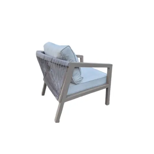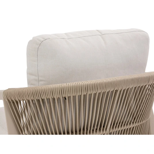Bora izsmalcināto estētiku papildina vertikālas virves detaļas uz krēslu atzveltnēm, piešķirot komplektam tekstūru un izsmalcinātību. Šī funkcija ne tikai uzlabo dizainu, bet arī nodrošina komfortu un atbalstu, padarot to ideāli piemērotu atpūtai vai izklaidei brīvā dabā.