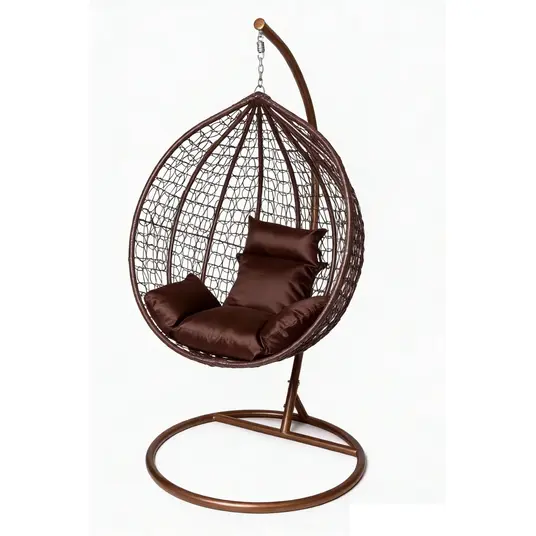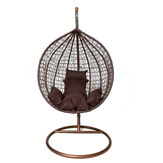 stilā ar šo brūno PE rotanga karājamo šūpuļkrēslu ar statīvu. Piemērots