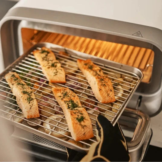 Krāsns un grila režīmi paver neierobežotas iespējas ar Volt 2. Tā daudz ātrāk uzkarst līdz normālai cepeškrāsns temperatūrai, un tajā ir pietiekami daudz vietas ātriem iknedēļas ēdieniem, gaļas vai dārzeņu cepumiem, cepumiem un citiem ēdieniem.