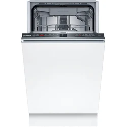 The Bosch Serie 2 SPV2HMX02E is a fully integrated dishwasher designed to seamlessly fit into your kitchen cabinetry, providing a sleek and modern look. This compact yet efficient dishwasher is perfect for smaller households and kitchens, offering ample space for up to 10 place settings. Equipped with cutting-edge technology, this model ensures a highly efficient cleaning performance with its multiple wash programs tailored for all types of dish loads, from delicate glassware to heavily soiled pots and pans. The dishwasher boasts an A++ energy efficiency rating, making it environmentally friendly by conserving water and electricity. Key features include the EcoSilence Drive for quiet operation, only producing 48dB of noise, which ensures your kitchen remains peaceful. The VarioDrawer at the top provides added flexibility for utensils and small items, freeing up space in the lower racks for larger dishes. The Load Sensor technology optimizes water usage by detecting the load size and adjusting water consumption accordingly. Additionally, this appliance comes with a convenient delay start timer, allowing you to set your wash cycle to begin at a time that suits you best. The AquaStop function provides complete protection against water damage by automatically shutting off the water supply in case of a leak. With the Bosch Home Connect app, you can remotely monitor and control your dishwasher from your smartphone or tablet, adding a level of convenience and control. The Bosch Serie 2 SPV2HMX02E is engineered to offer exceptional cleaning with minimal effort, ensuring your dishes come out sparkling clean every time.